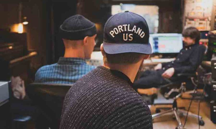 Happy stylish hipster man using technology